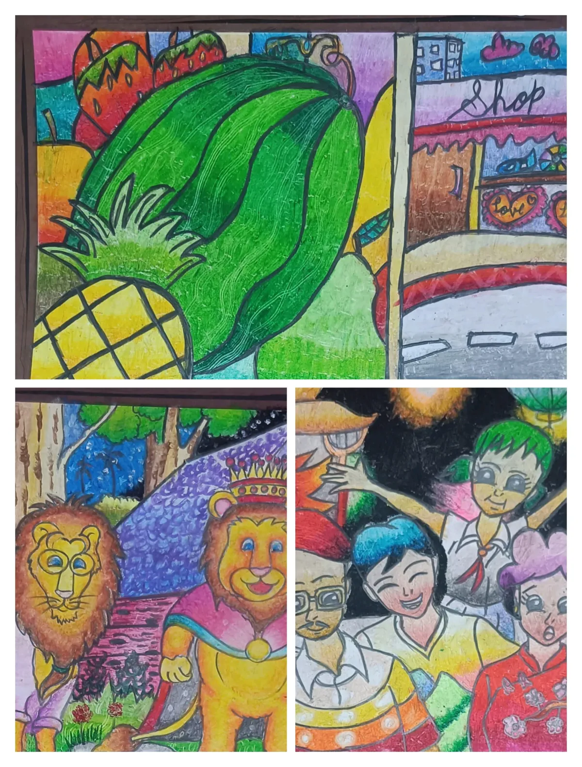 Painting / Story based illustrations through human theme subjects. Expansion of ideas, composition, drawing and step by step coloring techniques and effects using dry media.